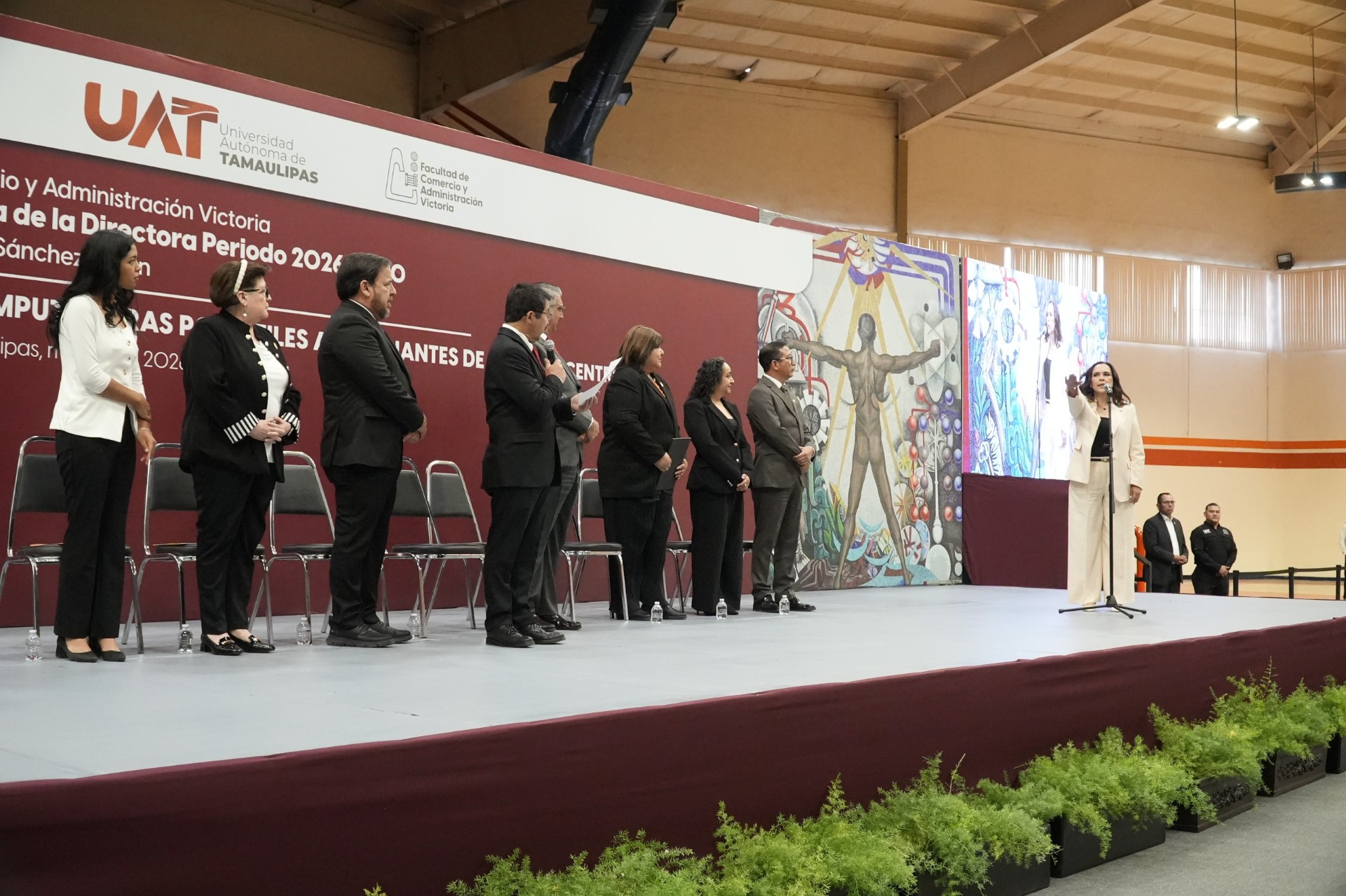 Conjuntamente, en cumplimiento al Estatuto Orgánico de la UAT, se entregó la constancia de elección y se oficializó el inicio de la gestión de Mónica Sánchez Limón al frente de la FCAV, convirtiéndose en la primera mujer en encabezar esta facultad en 58 años de historia.