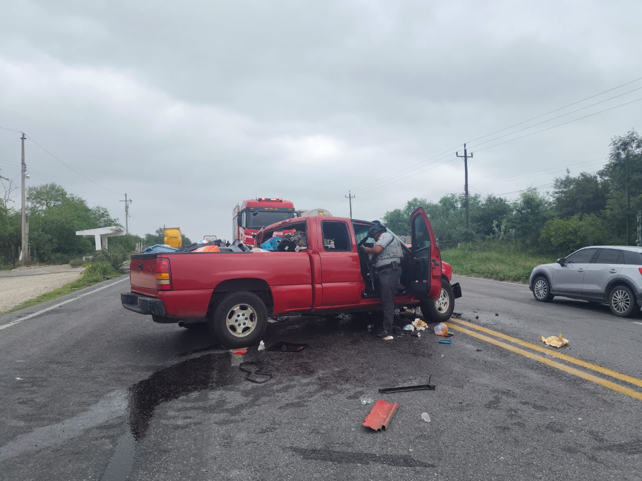 SAN FERNANDO.- Derivado de un accidente con personas lesionadas, la circulación se encuentra cerrada en el carril de norte a sur de la Carretera Federal 101 Victoria-Matamoros.