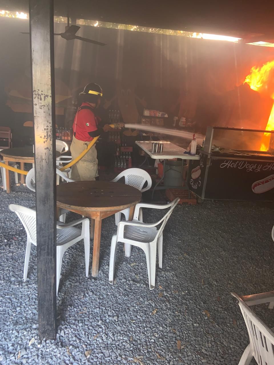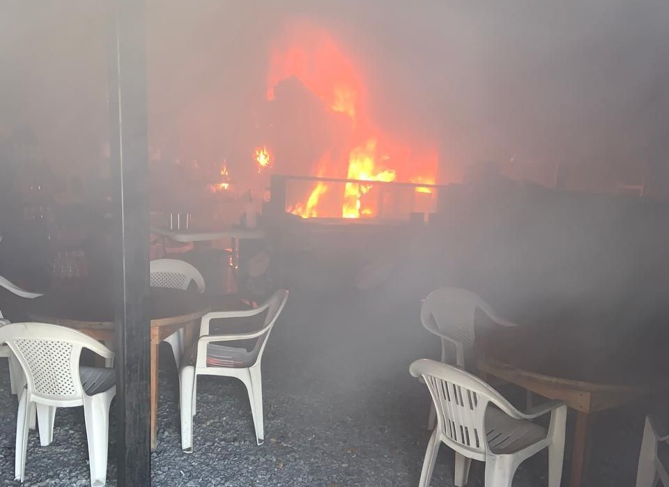 El siniestro comenzó presuntamente en la cocina, propagándose rápidamente hacia el área de comensales, donde el fuego devoró mesas y sillas.