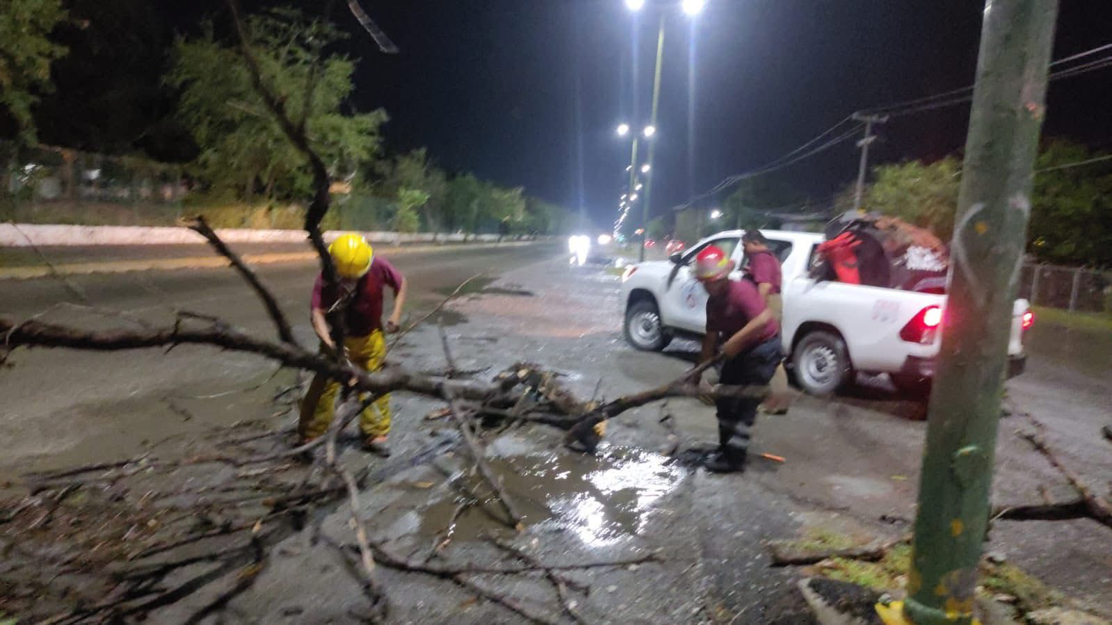 Ciudad Victoria, Tamaulipas (13 de abril de 2026).- Tras las intensas lluvias registradas la noche de ayer, elementos del Cuerpo de Bomberos desplegaron un operativo para atender múltiples reportes por caída de árboles que obstruían la vía pública en distintos puntos de la capital.