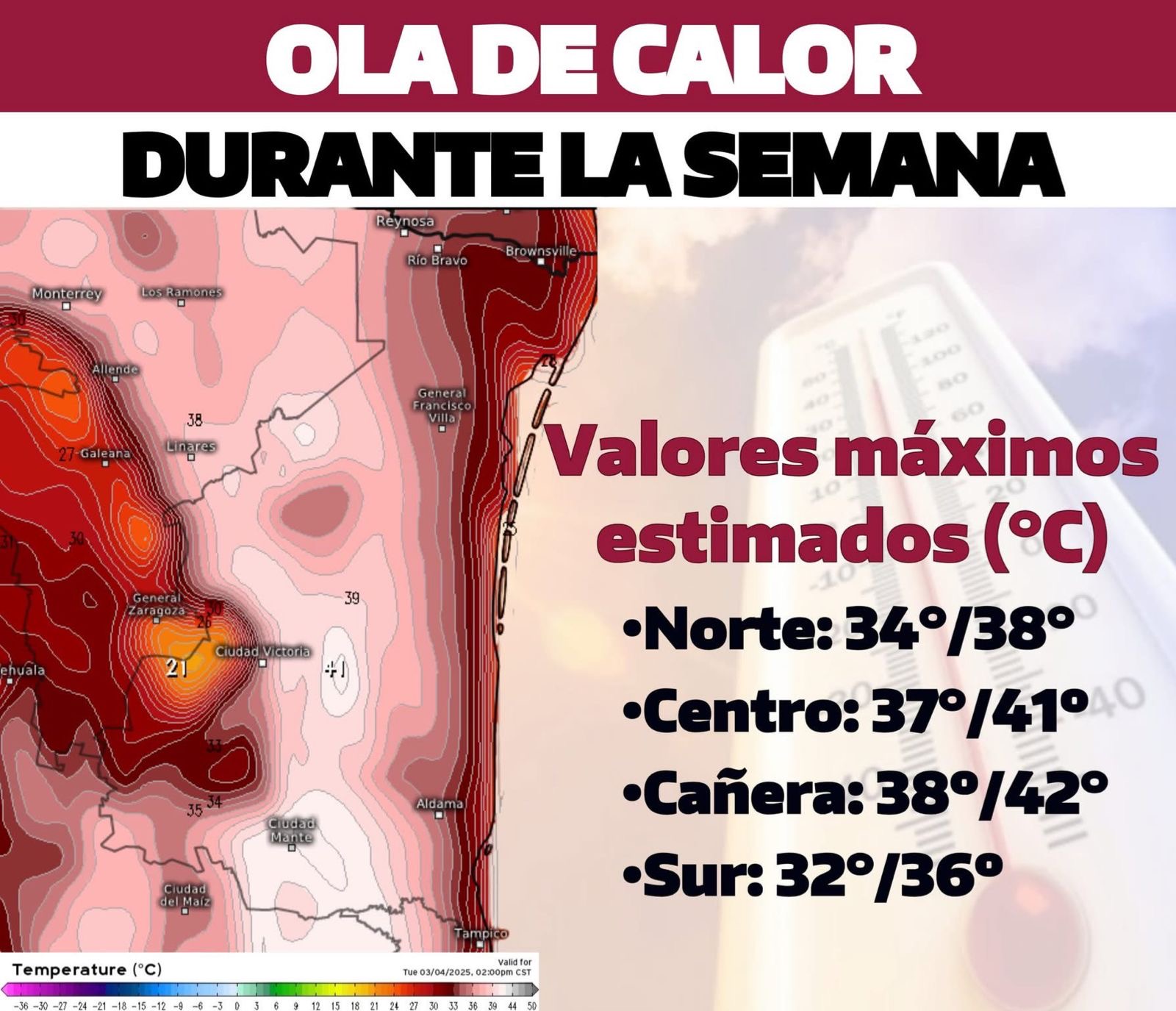 Ciudad Victoria, Tamaulipas (27 de abril de 2026).- El estado de Tamaulipas enfrenta un escenario climático crítico. Protección Civil estatal ha emitido un aviso oficial ante la llegada de una intensa ola de calor que generará temperaturas extremas en la mayor parte del territorio durante las próximas jornadas.