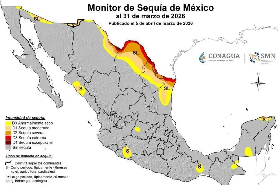 Ciudad de México (7 de abril de 2026).- El panorama hídrico en Tamaulipas ha alcanzado un punto de inflexión. Según el reporte más reciente del Servicio Meteorológico Nacional (SMN) y los indicadores de la Comisión Nacional del Agua (Conagua), la cuenca del Río Bravo atraviesa una fase de sequía de severa a excepcional. Esta situación impacta directamente a municipios clave como Nuevo Laredo, Reynosa y Matamoros, donde la disponibilidad del recurso se encuentra en mínimos históricos.